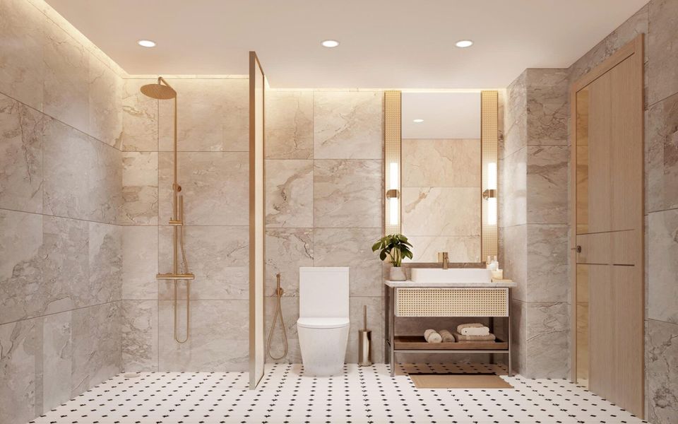 • Phòng tắm và nhà vệ sinh: Lắp đặt hoàn thiện thiết bị vệ sinh, phụ kiện phòng tắm.