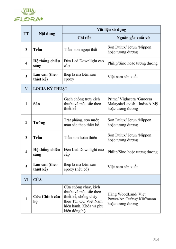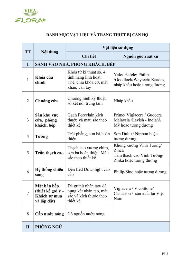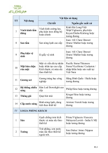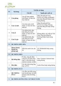 VẬT LIỆU, TRANG THIẾT BỊ BÀN GIAO CĂN HỘ: