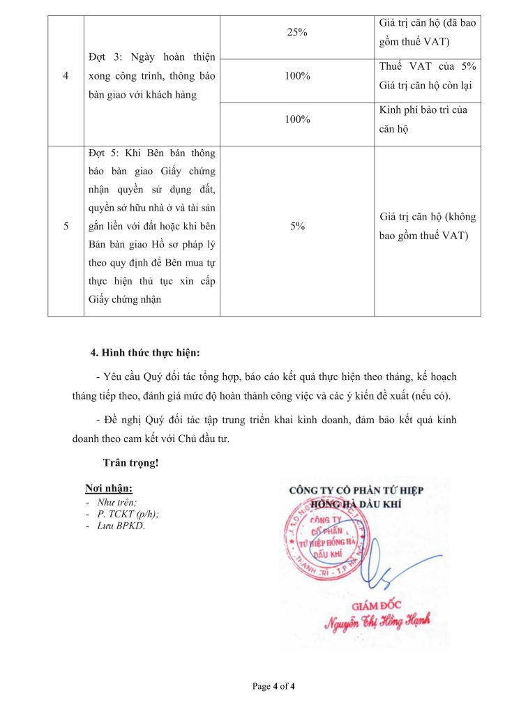 | Chủ đầu tư | Công ty Cổ phần Tứ Hiệp Hồng Hà Dầu Khí |