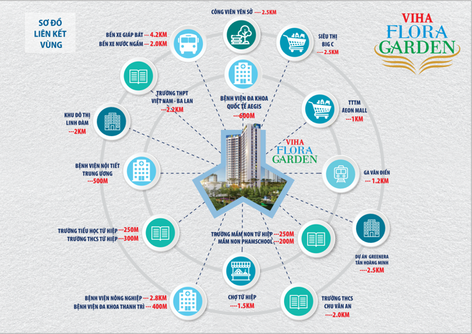 Nhờ vị trí chiến lược, cư dân Viha Flora Garden Tứ Hiệp không chỉ được sống trong môi trường trong lành mà còn dễ dàng tiếp cận các tiện ích ngoại khu như bệnh viện, trường học, trung tâm thương mại và các khu vui chơi giải trí.