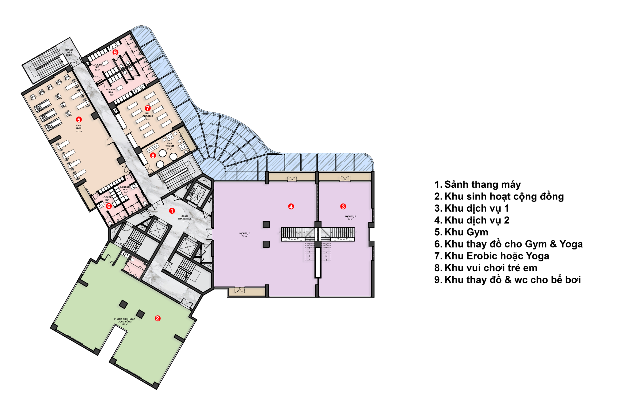 Khu thể thao và gym: Phòng tập gym, yoga hiện đại và khu thể dục ngoài trời.