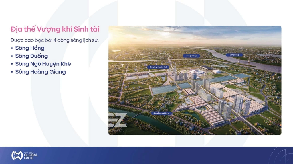 Với vị trí đắc địa Vinhomes Global Gate được bao bọc bởi 4 dòng sông trù phú